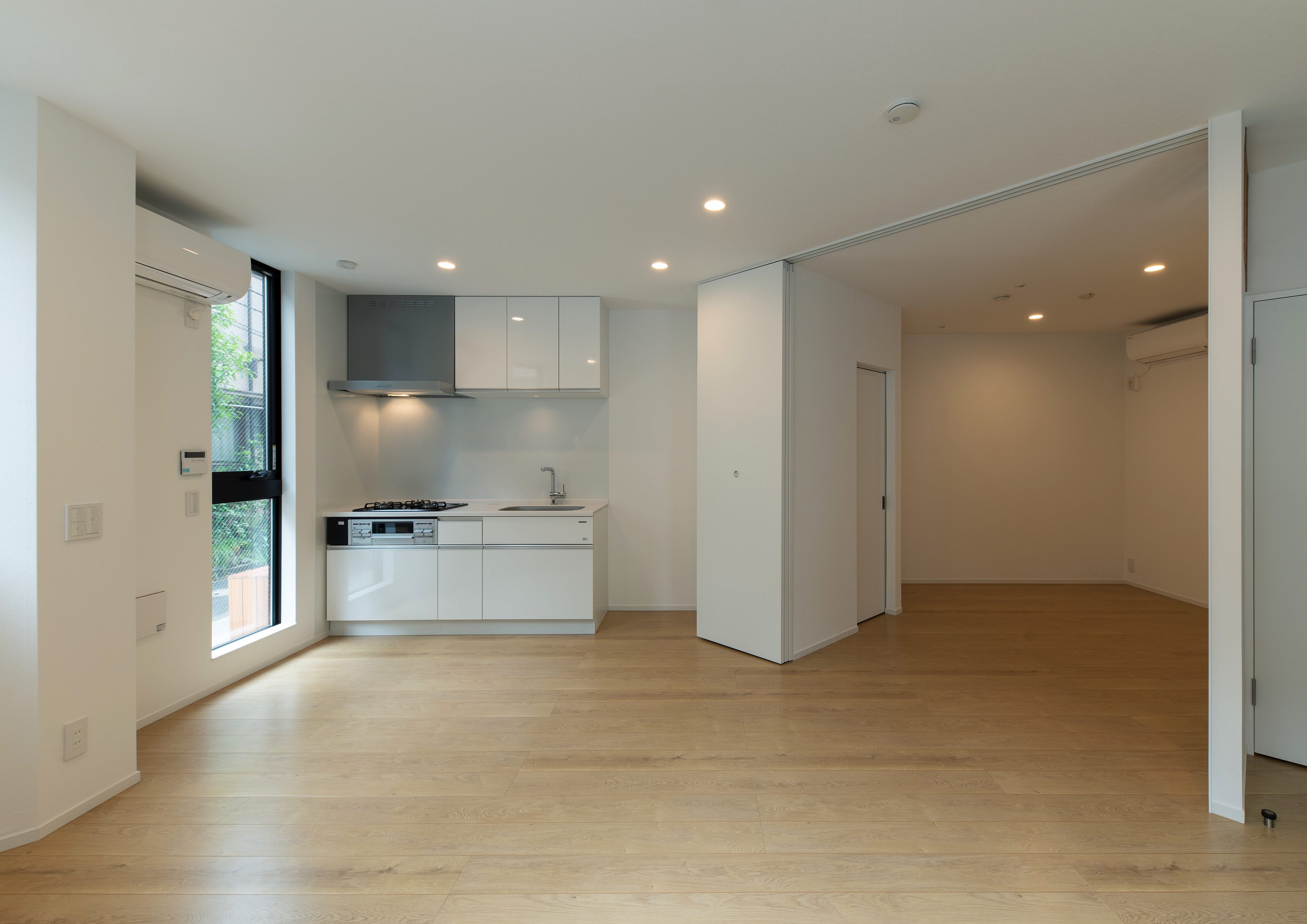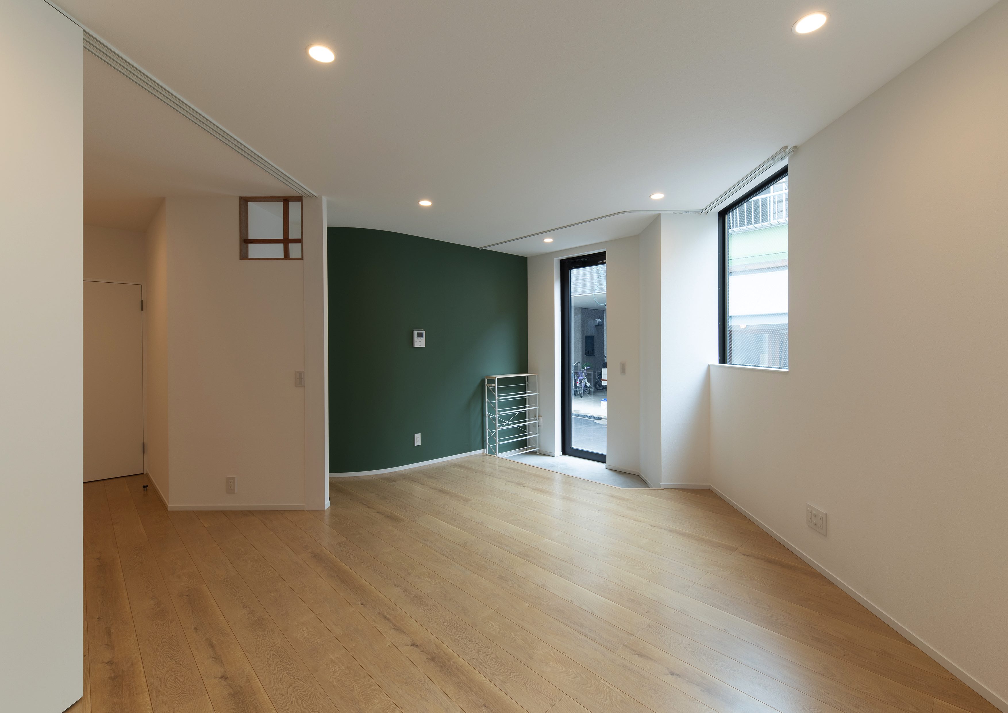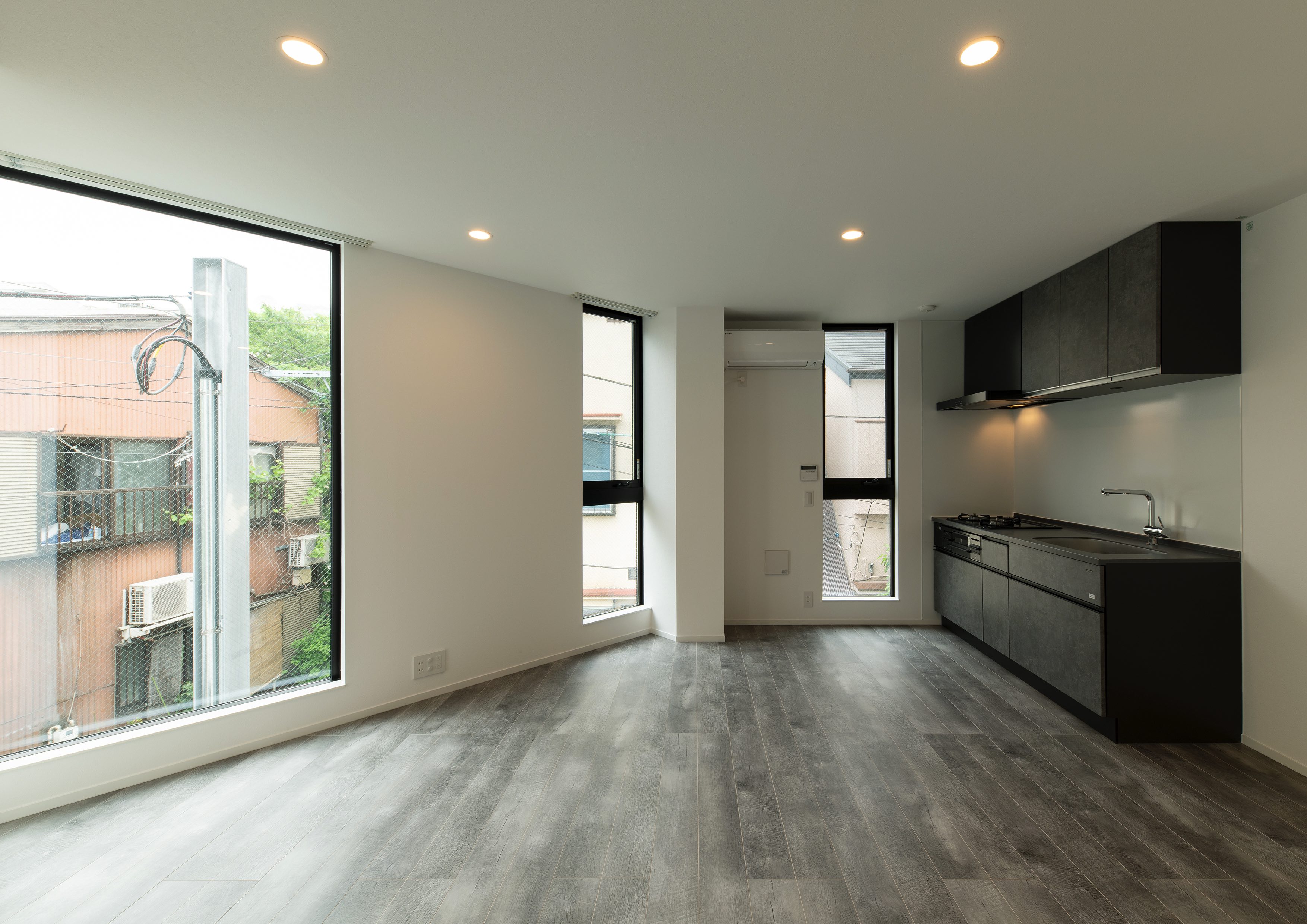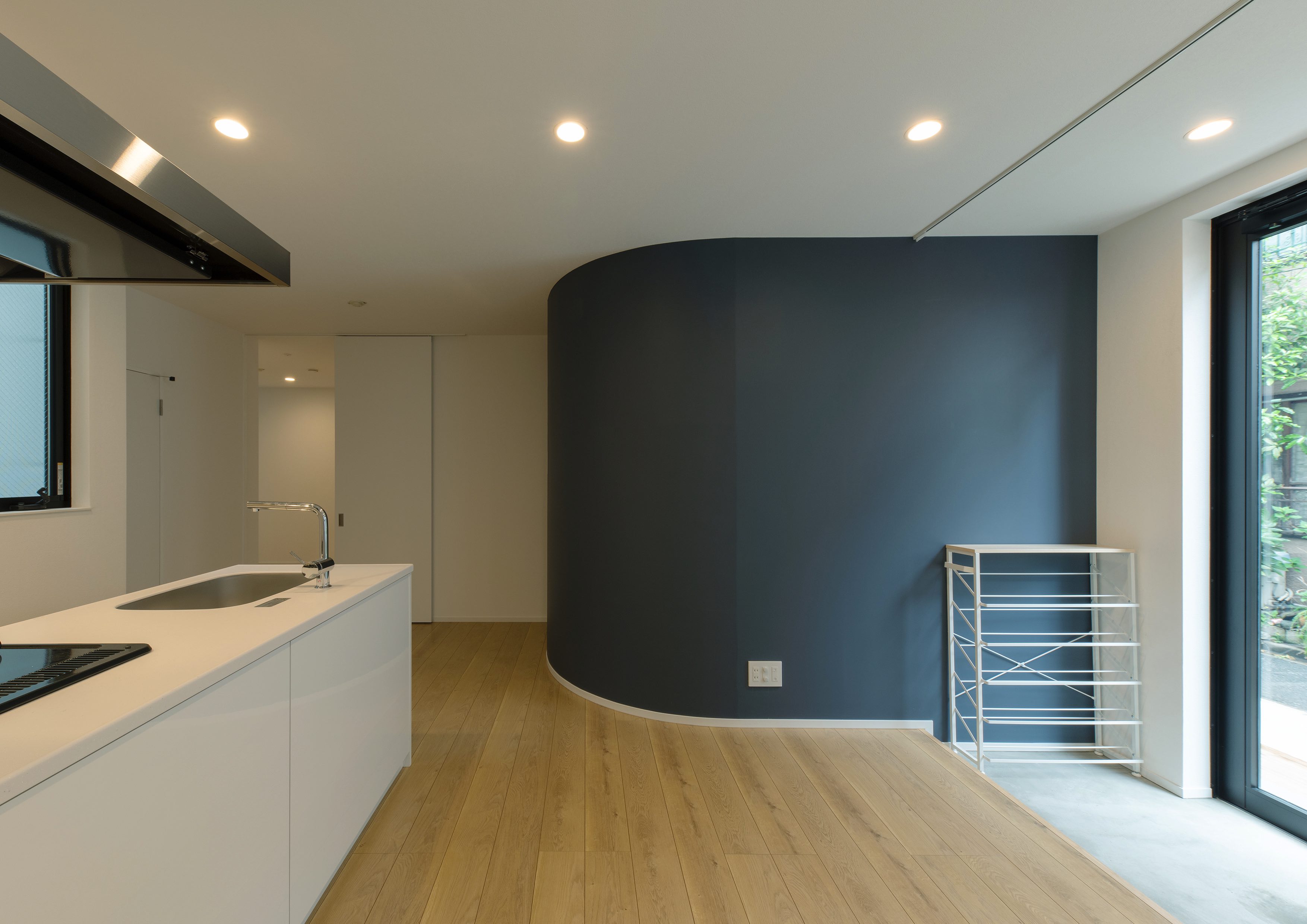 三好2丁目の店舗併用集合住宅 準工業地域 構造:鉄骨造 敷地面積:207.65㎡ 延床面積:553.44㎡ 住戸数 :10戸 店舗数:1店舗 最寄り駅は清澄白河駅、東京都現代美術館にほど近いアーティスト・イン・レジデンスをテーマにした集合住宅。建築面積から差し引いた道路側の空きスペースを街に寄与する空間とする為、ベンチ、ストリートファニチャーを設けている。4階建てすべての住戸の玄関は1階にあり、ガラス越しの玄関とベンチを配することによりコミュニティーの醸成を図っている。