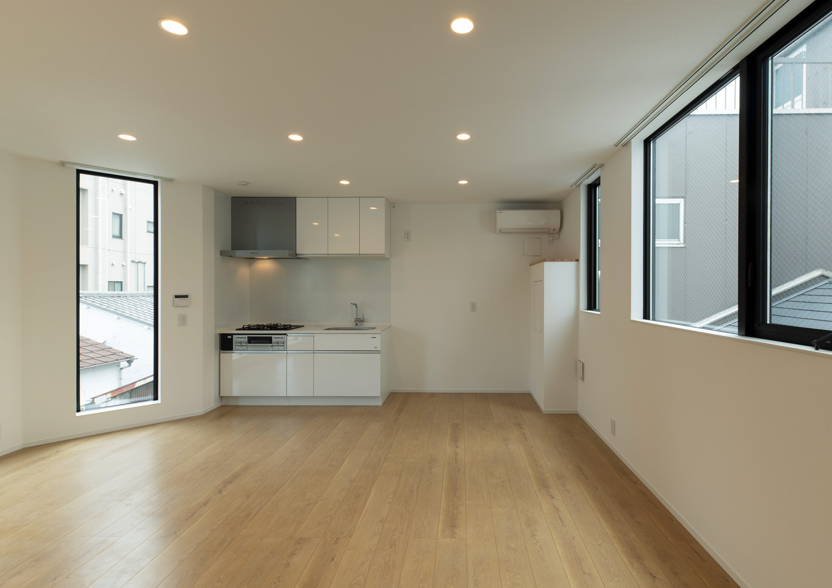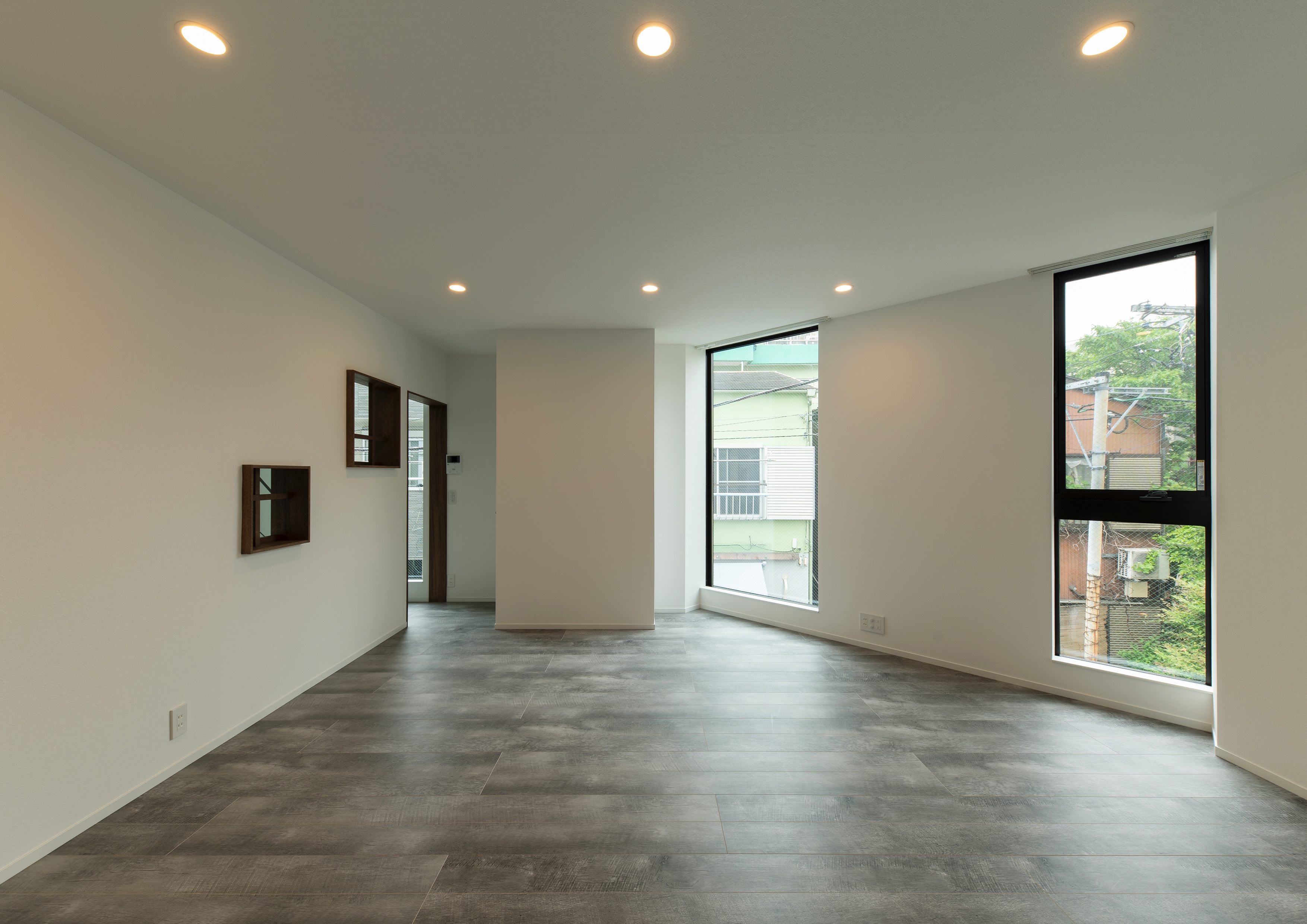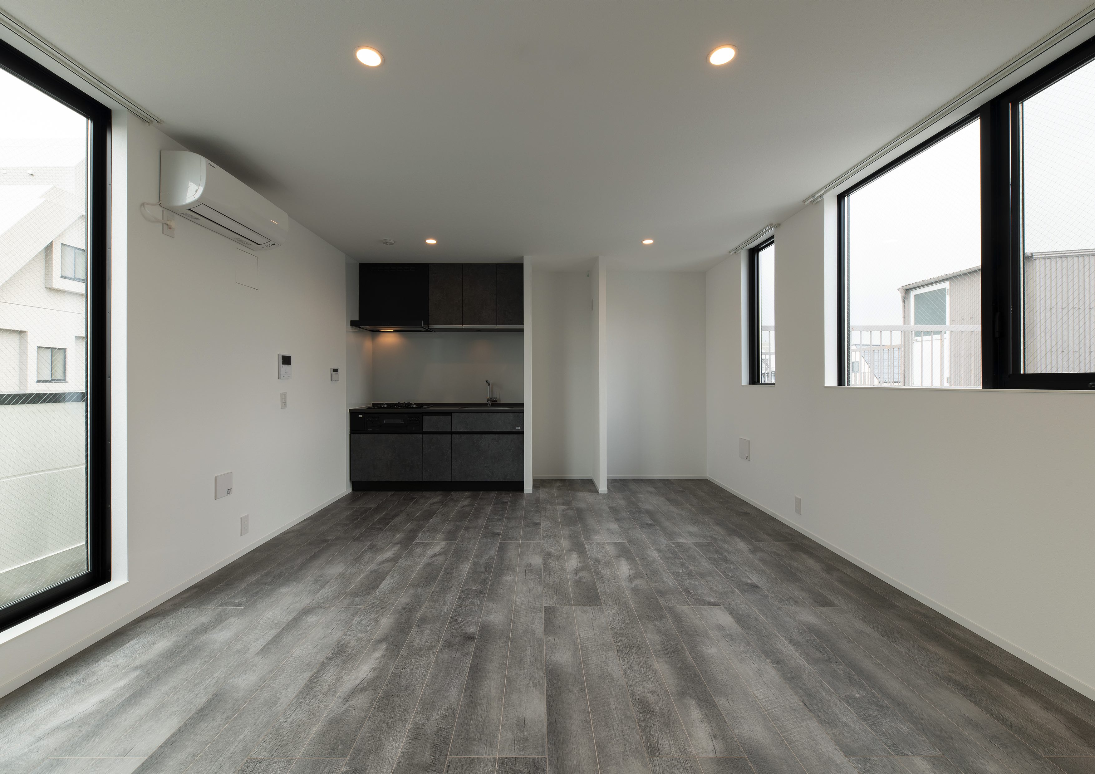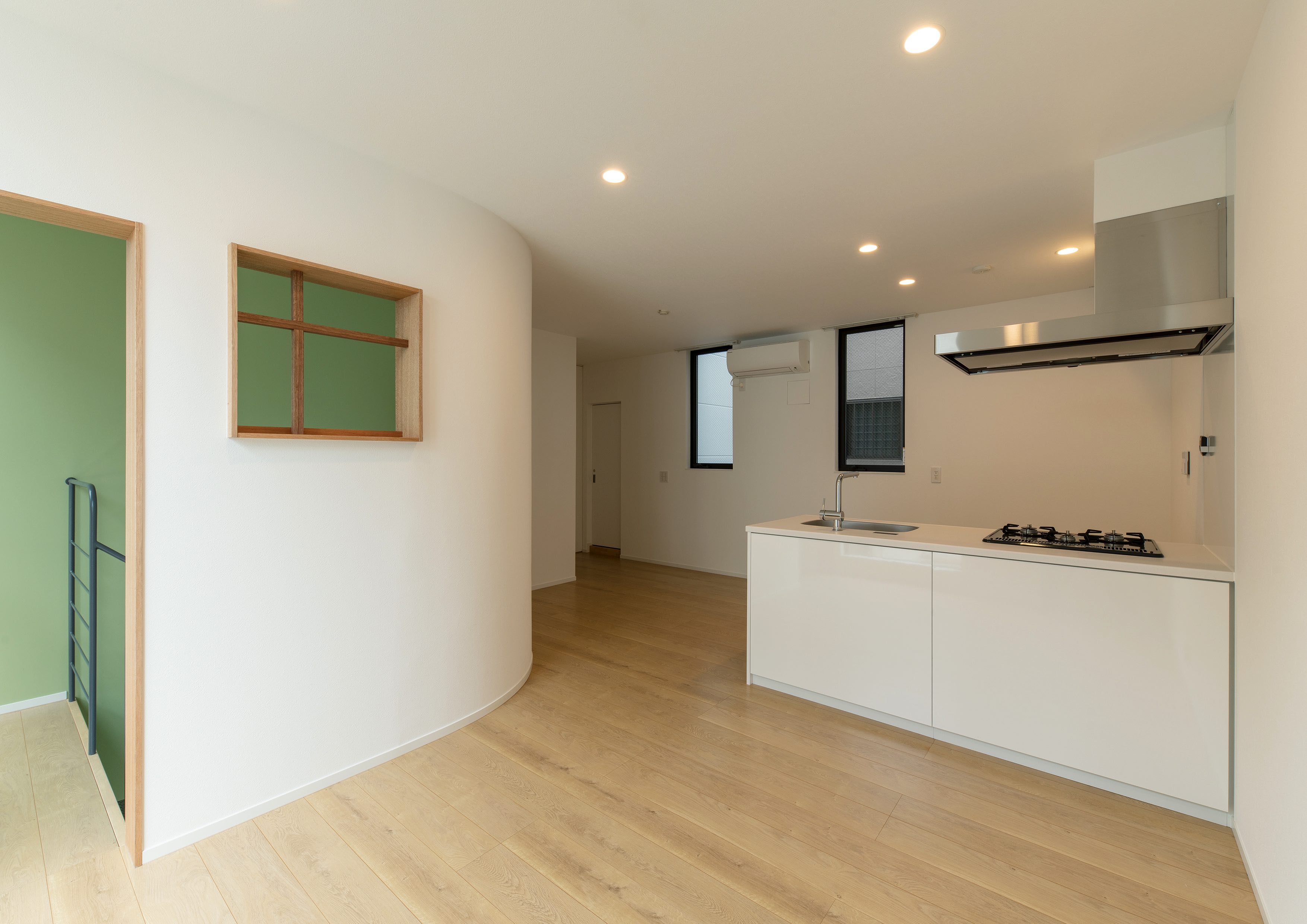 三好2丁目の店舗併用集合住宅 準工業地域 構造:鉄骨造 敷地面積:207.65㎡ 延床面積:553.44㎡ 住戸数 :10戸 店舗数:1店舗 最寄り駅は清澄白河駅、東京都現代美術館にほど近いアーティスト・イン・レジデンスをテーマにした集合住宅。建築面積から差し引いた道路側の空きスペースを街に寄与する空間とする為、ベンチ、ストリートファニチャーを設けている。4階建てすべての住戸の玄関は1階にあり、ガラス越しの玄関とベンチを配することによりコミュニティーの醸成を図っている。