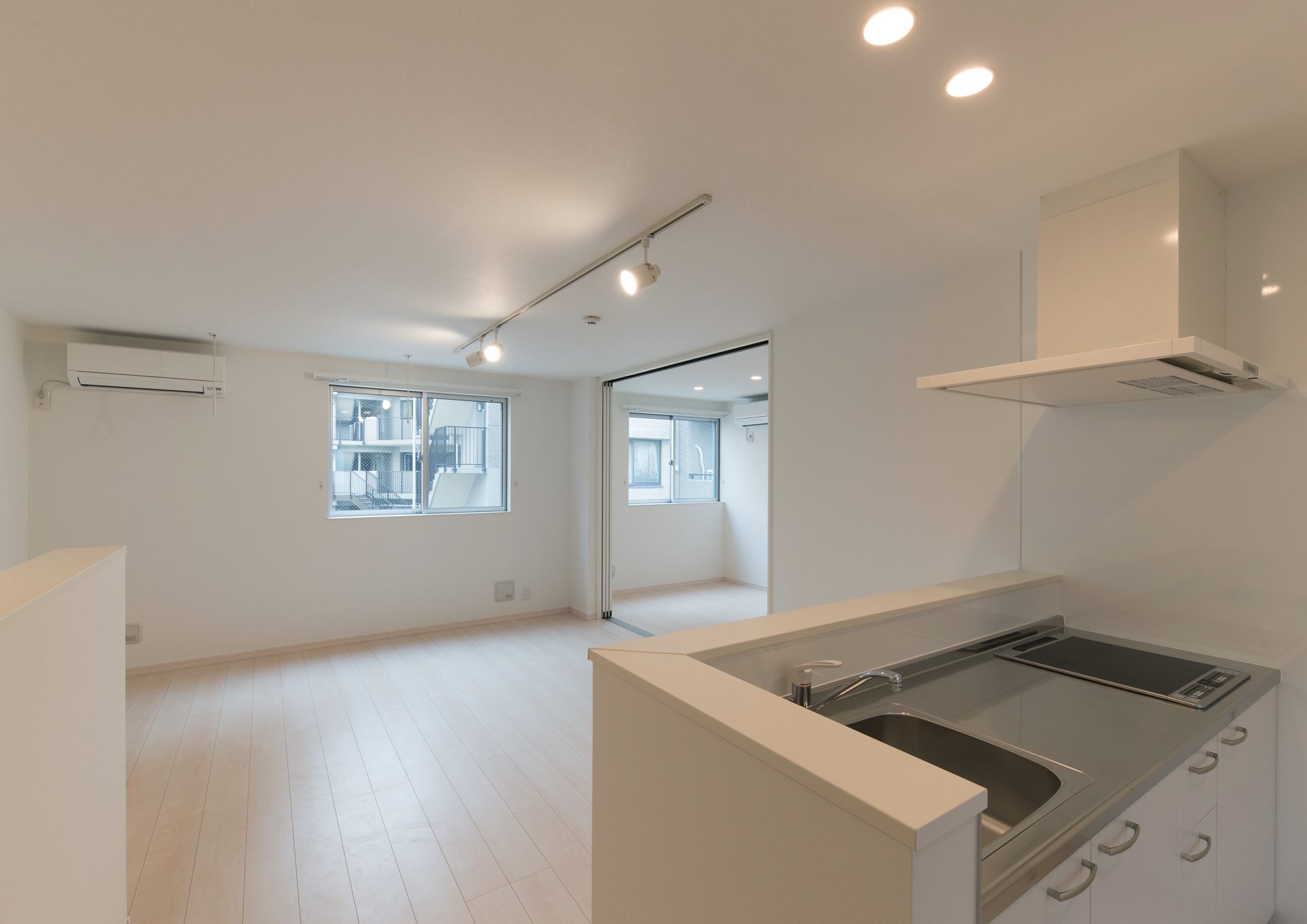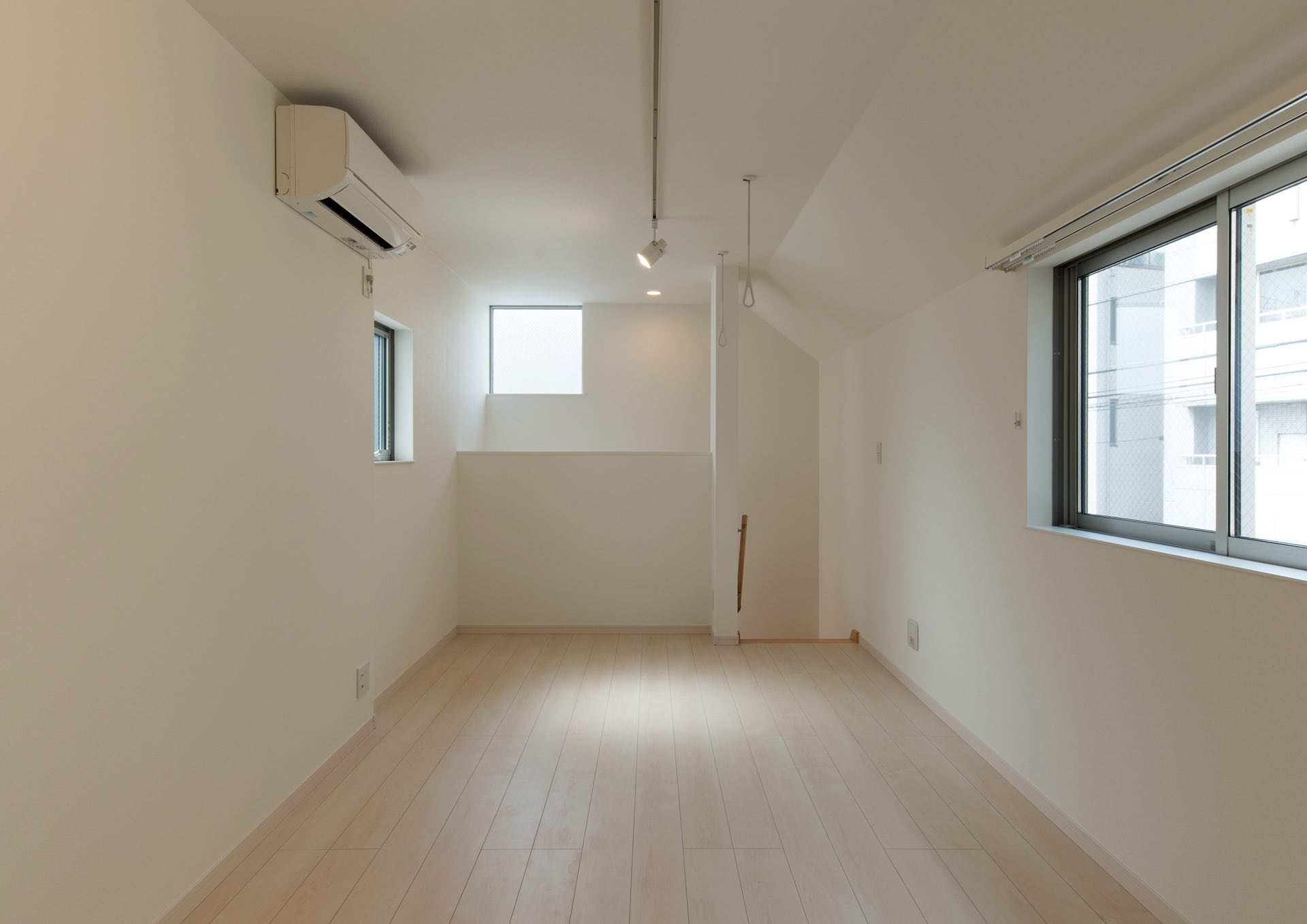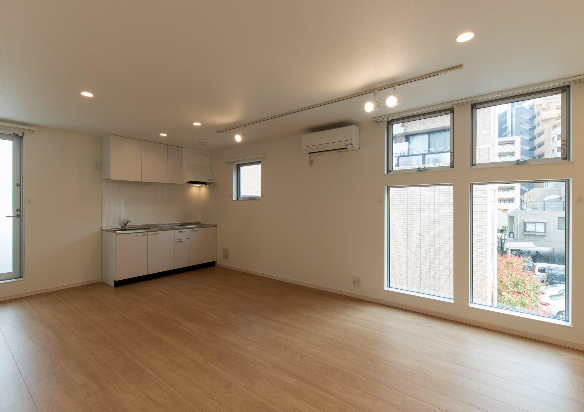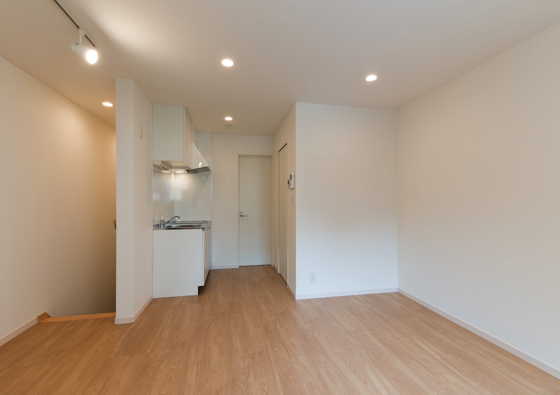 品川区東大井1丁目の集合住宅 準工業地域 構造:木造 敷地面積:317.06㎡ 建築面積:180.09㎡ 延床面積:499.95㎡ 住戸数 :14戸 様々な入居者に対応する為に、全14戸間取りが異なる。ワンルーム・1LDK・2LDKと様々な家族のシーンに寄り添う構成になっている。全住戸は2面採光を取入れ明るい空間とし、外構のアプローチはヒールを履いても歩ける特殊な砂利敷きを行い、水はけも良く既視感の無い新鮮さ醸成している。