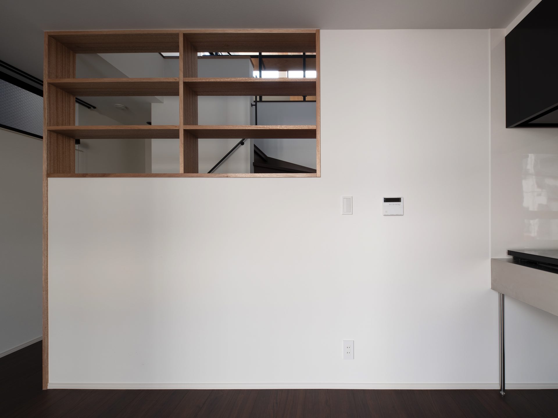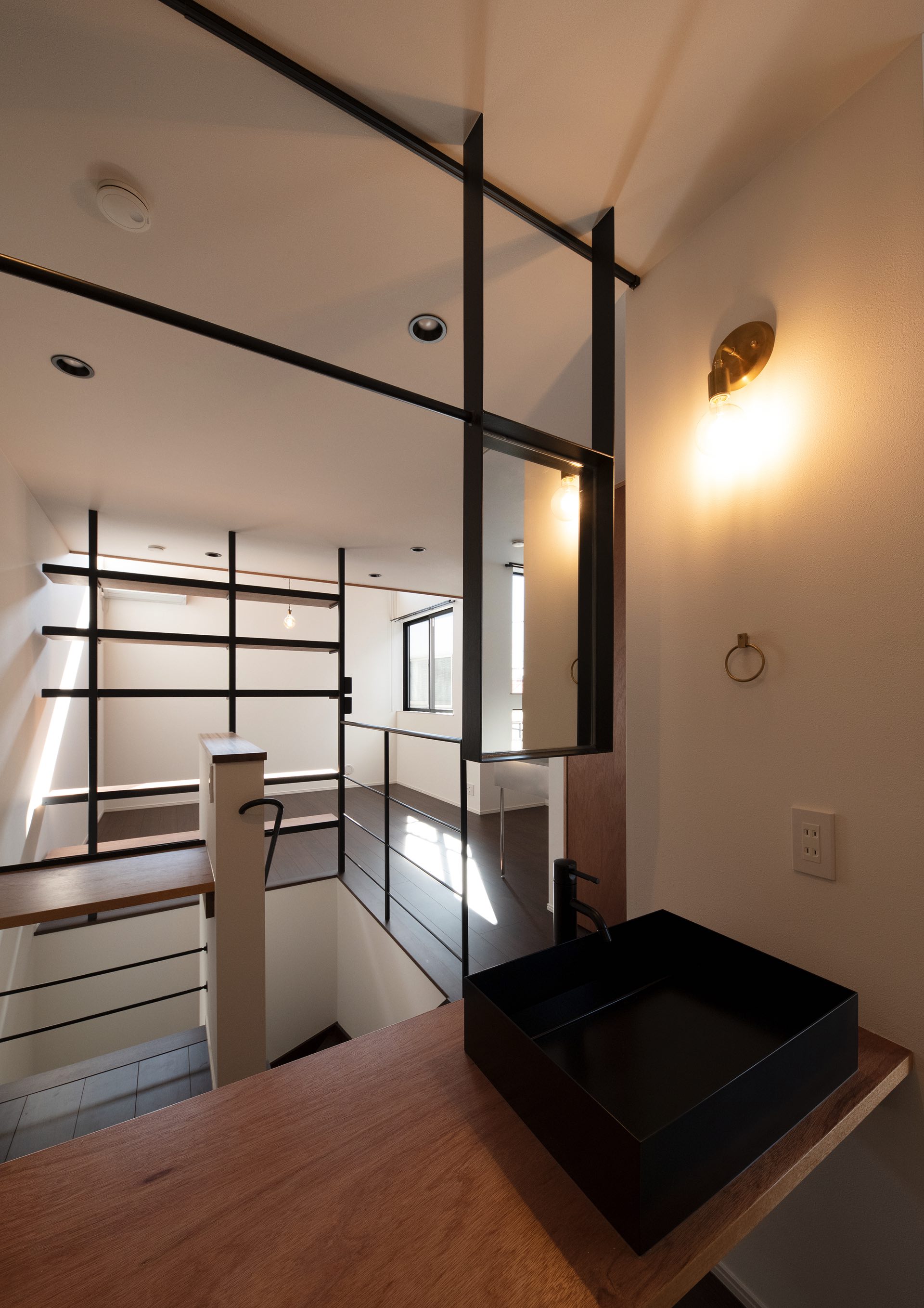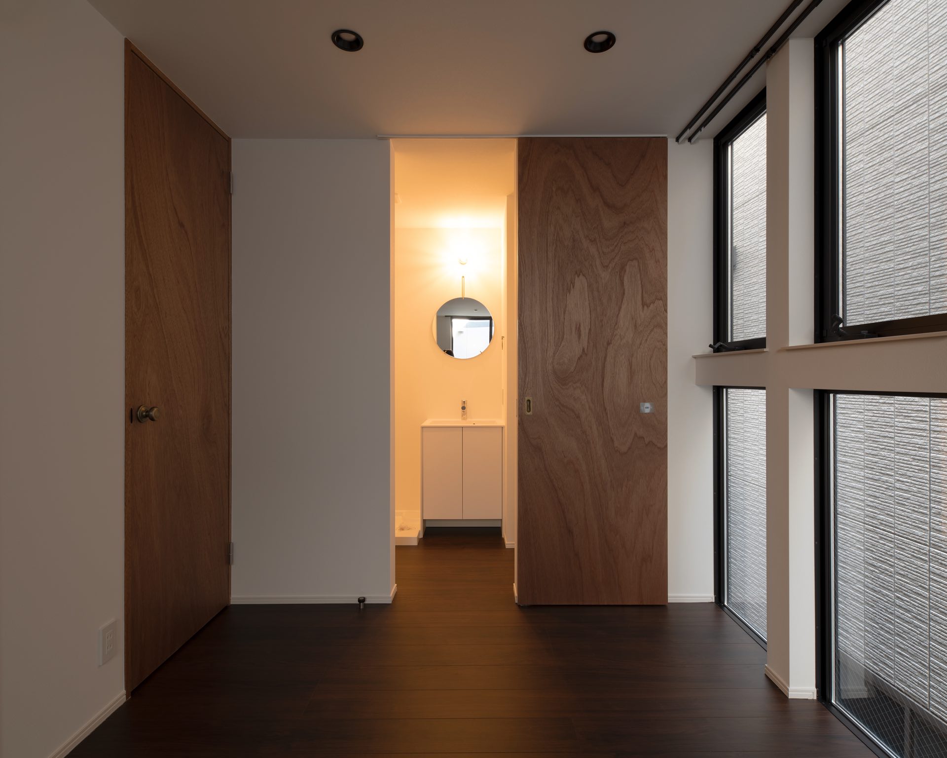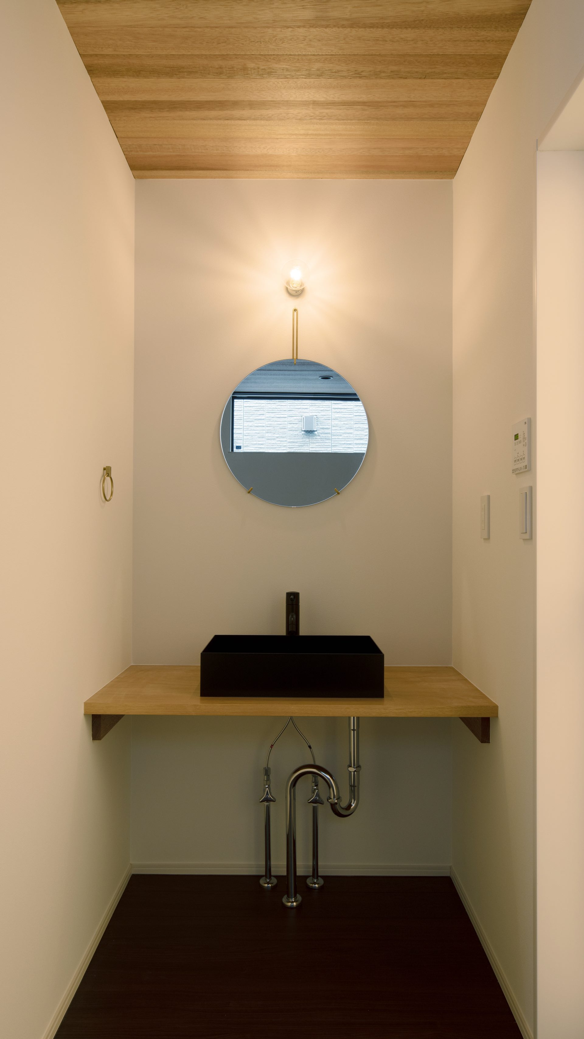 東尾久四丁目の集合住宅 準工業地域 構造:木造 敷地面積:102.30㎡ 延床面積:181.81㎡ 住戸数 :4戸 ファサード面は玄関ドアとFIXの水平連続窓を設けるアイコニックな外観。屋根勾配を利用したハイサイドライトから南の採光を取り入れた明るいLDK。天井面の内装は木羽目板を使用した高級仕様、コストバランスとコントラストを利かせたデザイン。